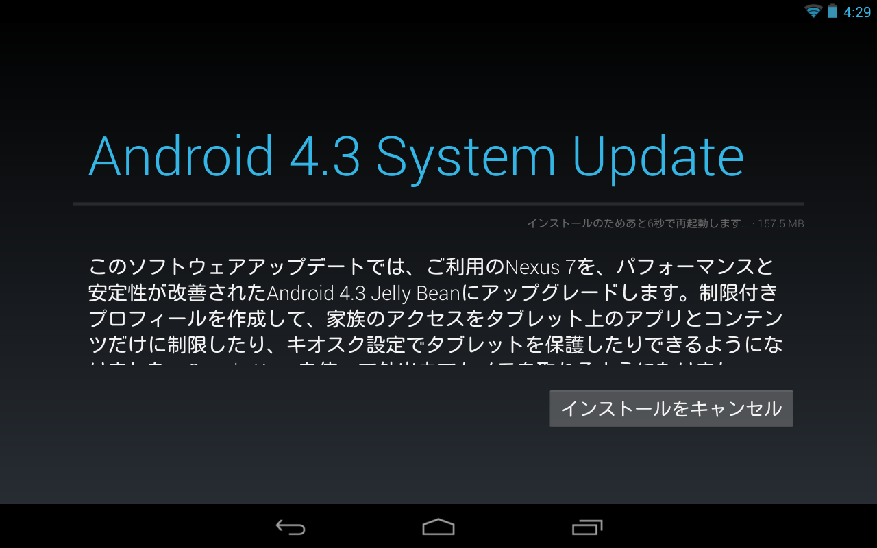 Nexus7へのAndroid4.3 ≪ 本日完了