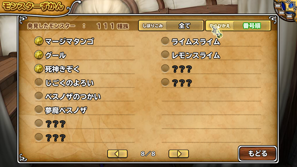 ちなみに現時点での「モンスターずかん」はこのような状態になっています。