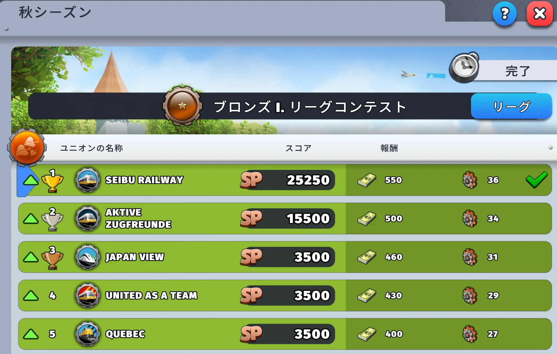 リーグが切り替わるときには、15時から21時の間にミッションをクリアしても所属ユニオンにSPが加算されません。その時間に到着してクリアとなる輸送は避けてくださいませ。21時以降に到着するように輸送してスタートダッシュをしましょう。SPが加算されない時間帯に列車を送り込むときには確認表示をしてほしいかも。優先度低に指定しているSPが加算されない時間帯にフィニッシュの列車を送り込む人は今後特定できしだい追放することにしました。ユニオンのメンバーみんなの努力を無駄にする行為は放置することができませんので……。