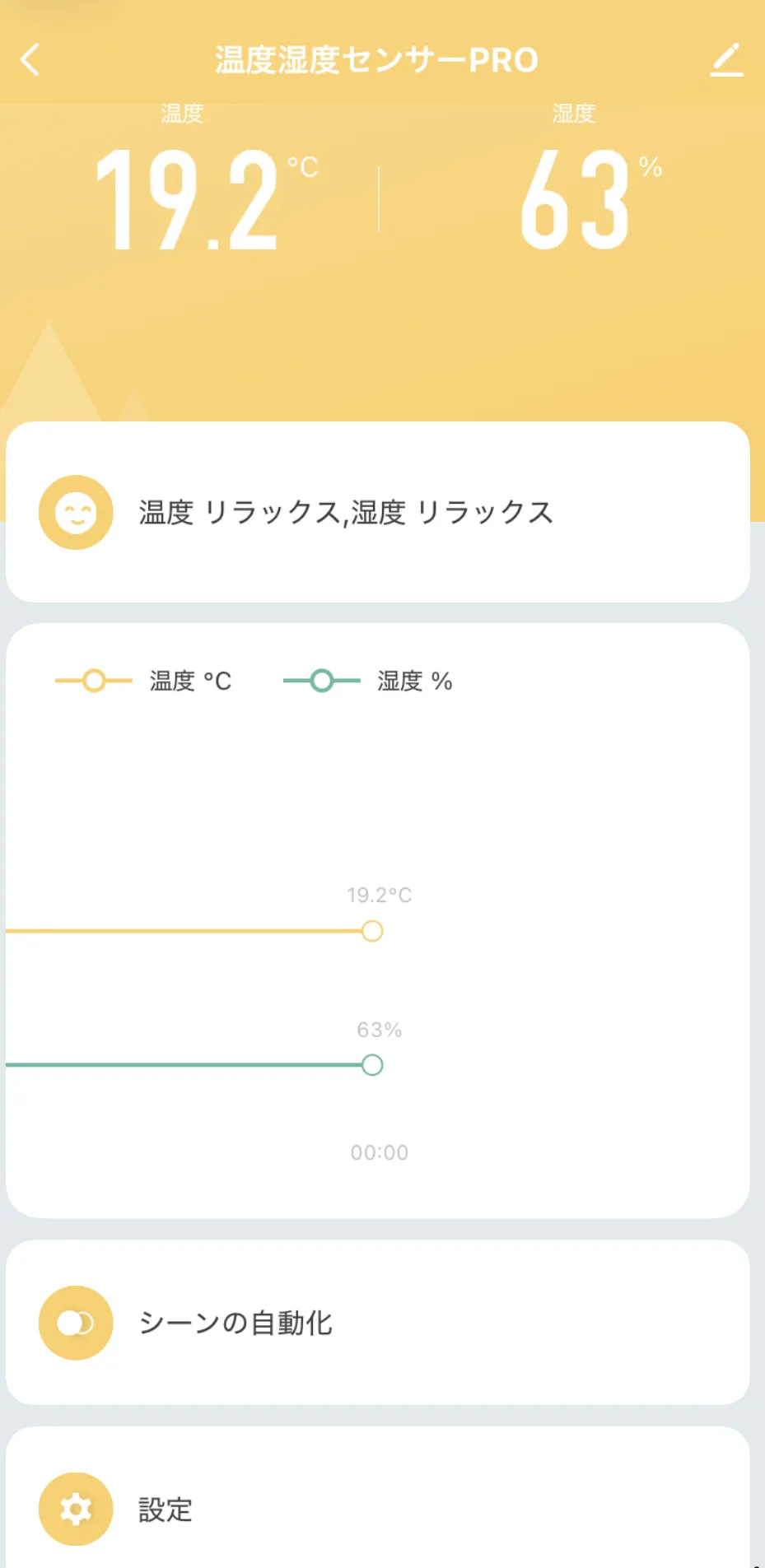 ほかに対応スマート家電を持っていないと、この「エジソンスマート 温度湿度センサーPRO(Wi-Fi)」だとアプリの必要性をあまり感じません。時間はスマートフォンとタブレットにも表示があるわけで、アプリは別の部屋から設置場所の温度と湿度の情報を見るだけって感じになってしまいます。