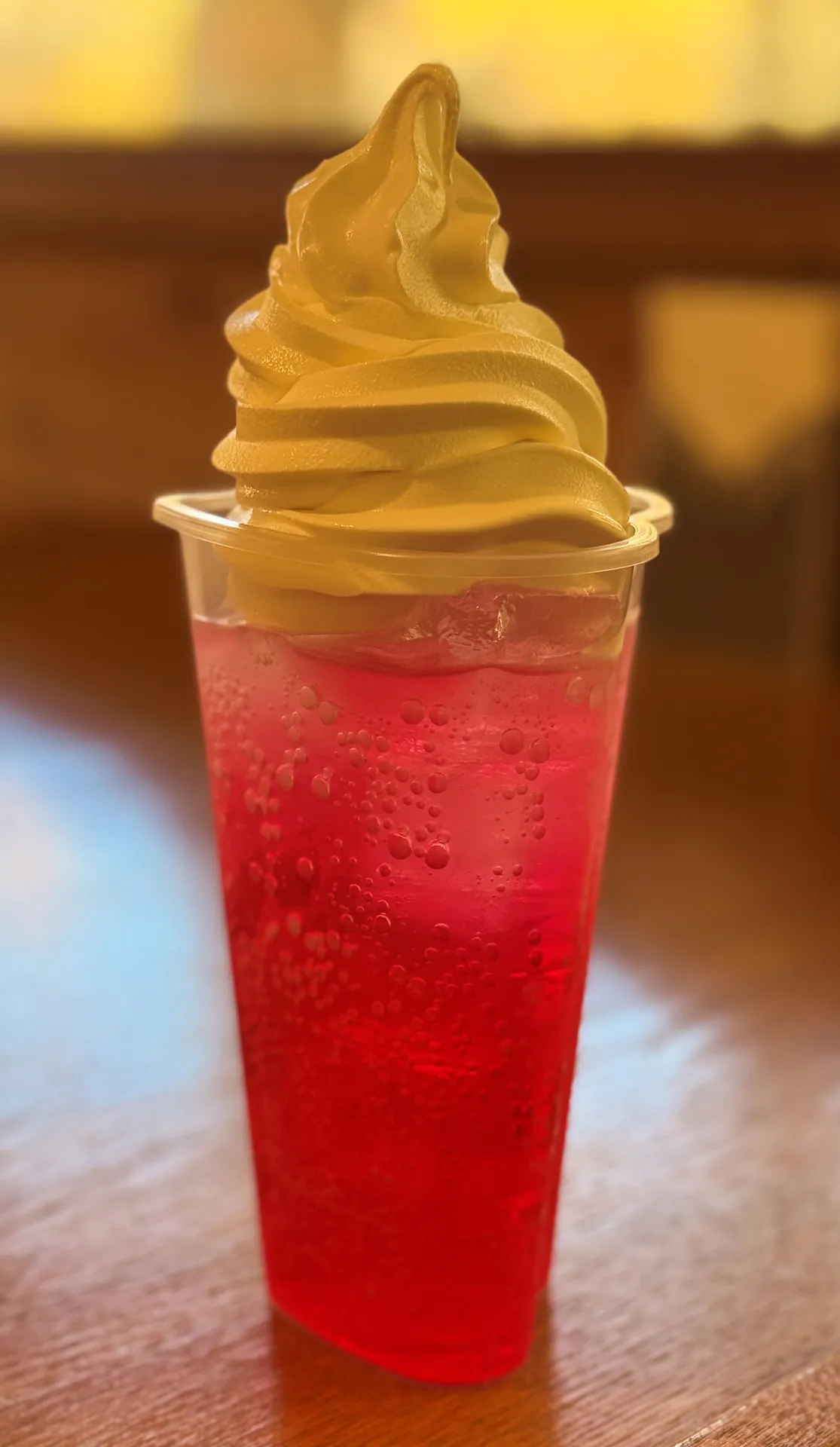 福寿庵の「山かけそば」で満腹になったらどうしようと思っていたのですが、なんとか多少の余力があったので、「上野スカイブリッジ」を見に行く前に「天空回廊」でデザート。12:00頃に到着。「クリームソーダ ストロベリー」で650円なり。VISAタッチ決済ができました。ほかにもいろいろキャッシュレス決済に対応していたので安心ですね。クリーム美味しかった。