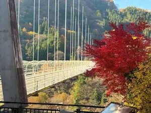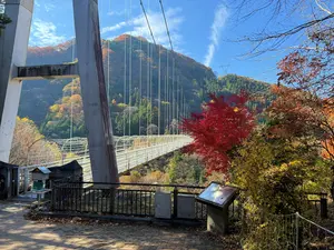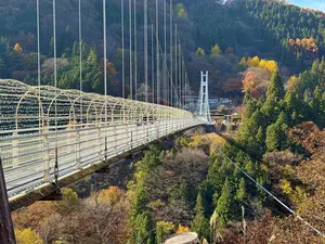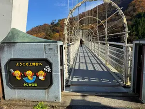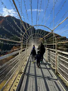 甘味を堪能してから、いざ「上野スカイブリッジ」へ。天空回廊の入っている建物から少し歩くと橋へとつながるトンネルがありました。地上からの高さは90㍍。長さ225㍍の歩行者専用のつり橋です。往復通行料100円。30分ごとに10分ほどシャボン玉が舞う幻想的な景色を楽しめるのですが、これ橋の中央部付近だけと規模が小さすぎて微妙な感じかも💦 関東最大級の鍾乳洞らしい 不二洞は自分の足の状態が悪かったので残念ながら断念。