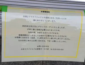 菊屋書店から帰宅する途中で違和感が……。マクドナルドが営業していないじゃないか💦 貼り紙らしきものがあるように見えたので、ちょっと見に行ってしまいました。
