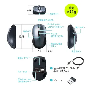 | 付属品 | マウス本体 / USBレシーバー / USB A to Cケーブル |